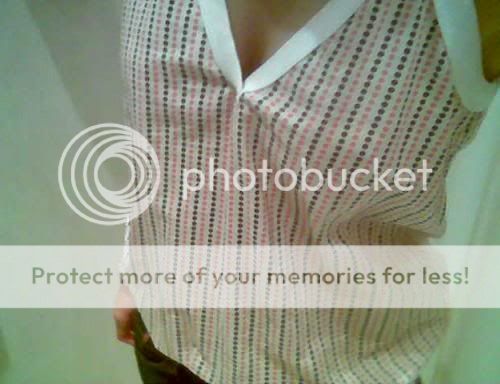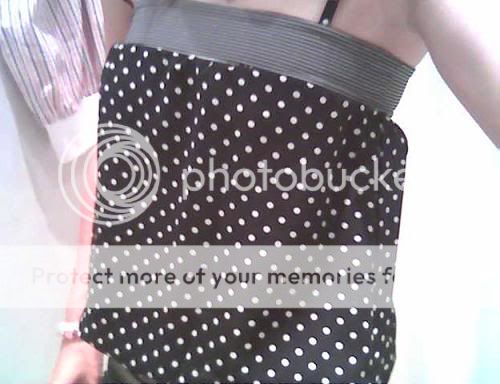 fashion or what?! Not very clear but still can see. She twist it around her spag top i guess! Guess she'll kill me if she sees this pic. ahaha!!