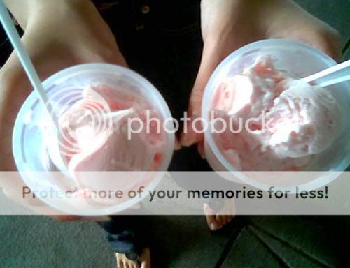 Jessie and my ice-cream! We're not supposed to eat de. But can't resist the temptation!!!