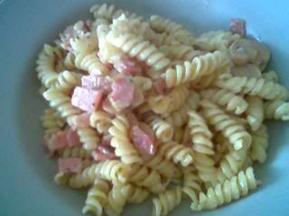 Prepared all the necessary stuffs and started cooking while deary get himself prepared for lunch. I cooked a simple dish for deary, bacon + ham + mushroom creamy pasta. Though simple, full of love okie!!