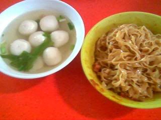 Deary and I woke up at 2pm. Slept so soundly. We went to have our lunch packeted at Bedok 85. We were so lazy to eat there, the weather is so fucking hot. Anyway, we stayed at deary's house the whole day. Watched VCD + sleep, life.. Thats life!! Then, had a late dinner at Bedok South. Yumz! We had fishball noodle again. I love it!!!