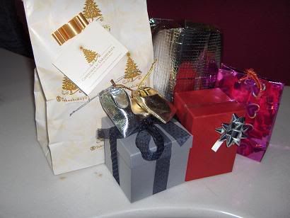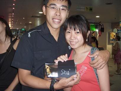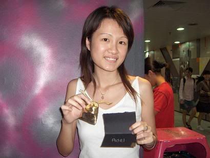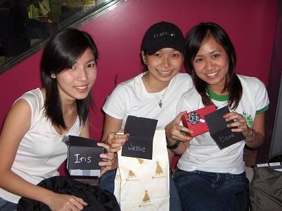 We were supposed to exchange pressies together with Rong, Shirley, Adeline, and Elaine at Orchard after school. While q-ing up for food, Jessie told me that her co. expected her to declare what's in the wrapped up pressie. And blur Jessie blurted out the gift she bought. *faint* So, I'm the first to know what she bought even before opening her pressie.