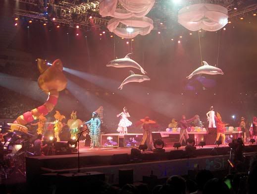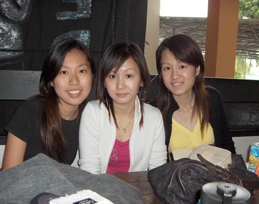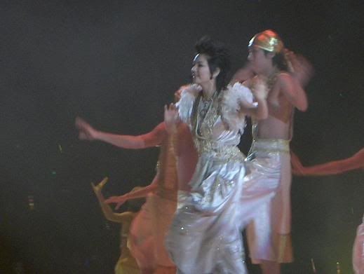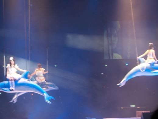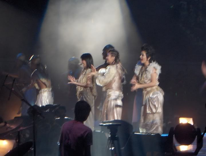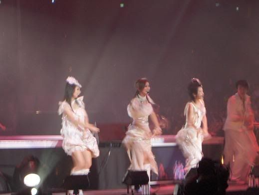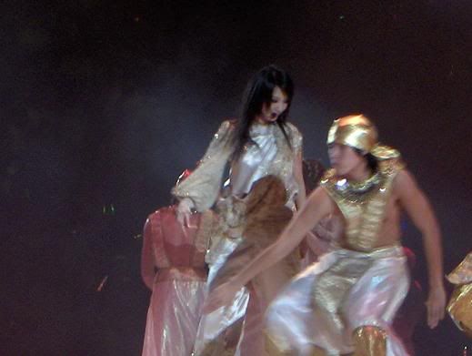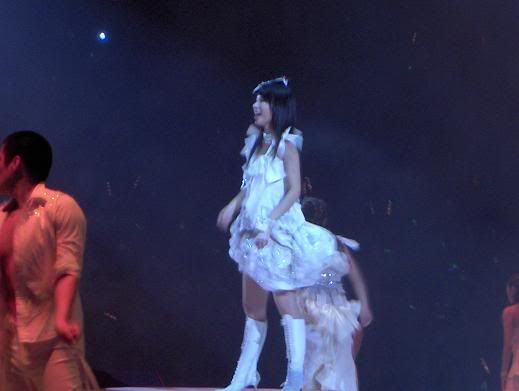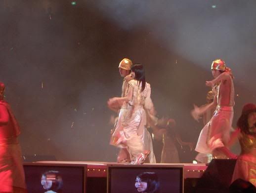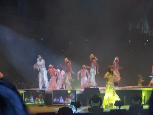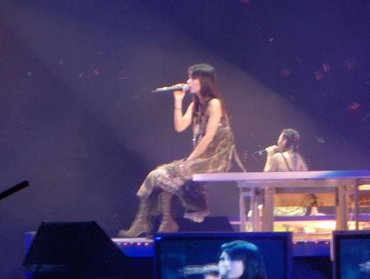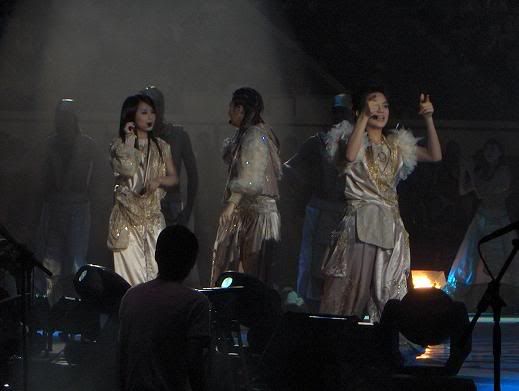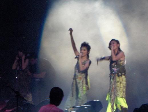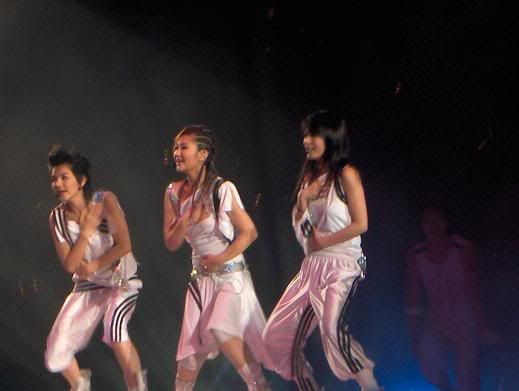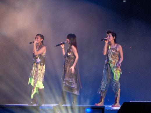 Went to the S.H.E concert with sis and friends. The concert is good. But, the sound system sucks to the core. Two times of loud "BoOoOOOoOOoO", causing the three poor little girls so helpless.. They looked at each other wondering whether they should continue.. lol. Hebe is the prettiest, followed by Ella, then Selina. Fortunate us, Hebe was standing at our side most of the time. Oh, by the way, we're sitting at row 8 (the $148 ticket). Sis and I brought our mama's binoculars, could see their faces clearly. Oh my!!! How i wish i could have their complexion.