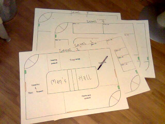 The floorplan Jessie and I drew for one of the presentations. A men's departmental store :
