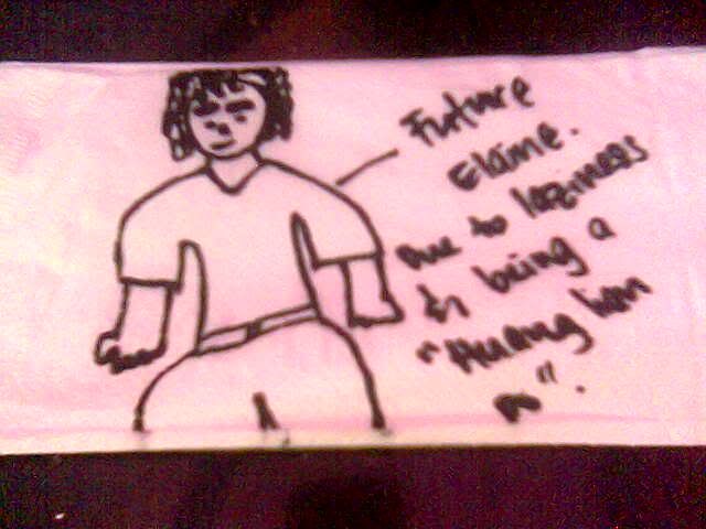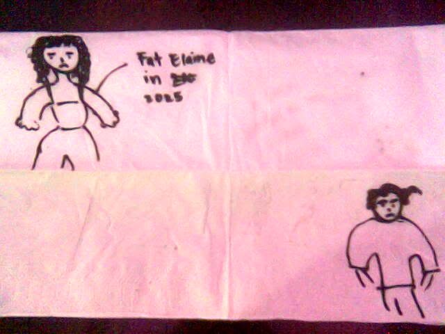 We talked about our future. Elaine claimed that her ambition is to be a housewive that don't cook. lol. Wierd ambition. Anyway, Jessie and I drew a few of the future her :