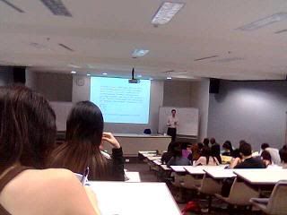 Wasn't that bad afterall. But its kinda a "sway" day alright? Woke up at 10:45am for 2pm class. Super kiasu, just like any other Singaporeans, in fact.. worst! I got prepared and ate my maggie lunch at 12:28pm and setted off to school. I managed to take the correct bus by changing here and there, crossing bridges and roads. Really troublesome. However, I got down a bus-stop earlier. Thus, I walked from Ngee Ann's bus-stop to SIM. Guess what?! I was almost 1 hour early for class. Anyway, I waited and waited for class to start. Met moses at the Atrium as he said he wanted to bring me to the book store to buy my textbooks - Sold out!!! Ended up buying nothing. Went back to my seat outside the lecture theatre before going in. I was like so shit. Everyone has cliques - either from orientation or they knew each other long before time - except me!! I sat pathetically at one corner at the back sit. I may be noisy but I'm pretty shy when it comes to knowing new people. I don't like to get into others' cliques yah?! However, we had to do some group discussion. Thus, get to know 5 girls around my seat. They're pretty friendly. Think I'm the youngest among the bunch. Feel so young man! Get to know 1 more girl while having smoking break (Not me, its them who smoke). She was like saying "Impossible got year 1985 in the class!" I'm one impossible person man! lol. They're like around 22 - 24 years old. Guess because I jumped to second year thats why. Had fish fritters and coffee for break today (its free mah!! lol.)
