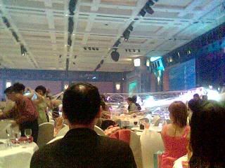 I know it sounds silly for me to attend Rong's mum's company Dinner & Dance. lol. Rong said her mum asked me to attend the dinner because she had an extra ticket and the ticket was rather costly. So not to waste it, its better to have someone replacing the seat. Alright, so me and Shawn were the replacements. lol. The dinner was a pretty grand one. Very few lucky draw though lol. I remembered that my mum's d&d have got 100 - 200 lucky draws. Top prizes were Rolax watch, tag huer couple watch, trip for 2 to hongkong, trip for 2 to bank kok, $100 - $2000 taka vouchers, $100 - $2000 Isetan vouchers, plasma tv, hi-5 set, household appliances, etc. Really really tempting prizes. I remembered once.. I almost got the Rolax watch (1st prize every year). 1 number difference only. lol.