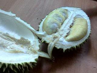 Really funny! We saw an ang moh sat alone eating 1 durian. We thought probably he stayed in Singapore for a very long time. So perhaps, he knew how to like the taste of durians. We came before him actually. But he left after 5 - 10 mins of eating. lol. How can 1 possible eat so fast? Thus, we suspected that he didn't know that there are "meat" at other "compartments" of a durian. True enough, the durian shell he threw was opened once only. lol.