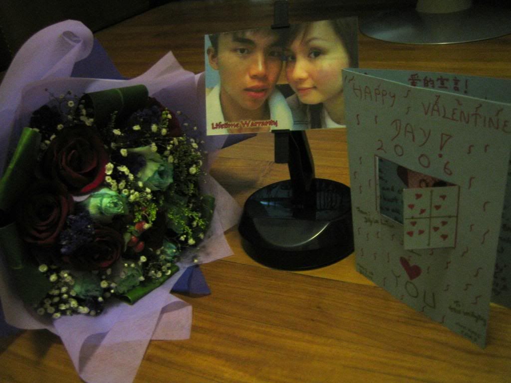 After the dinner, my dear baobei surprised me with a bouquet of flowers, a hand-made card, and a present. This is my first bouquet of flowers received from him after 2 long years.