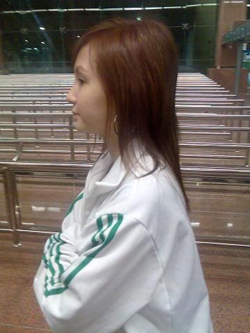 Before going to KL, at the Singapore custom. Look at my new hair style.